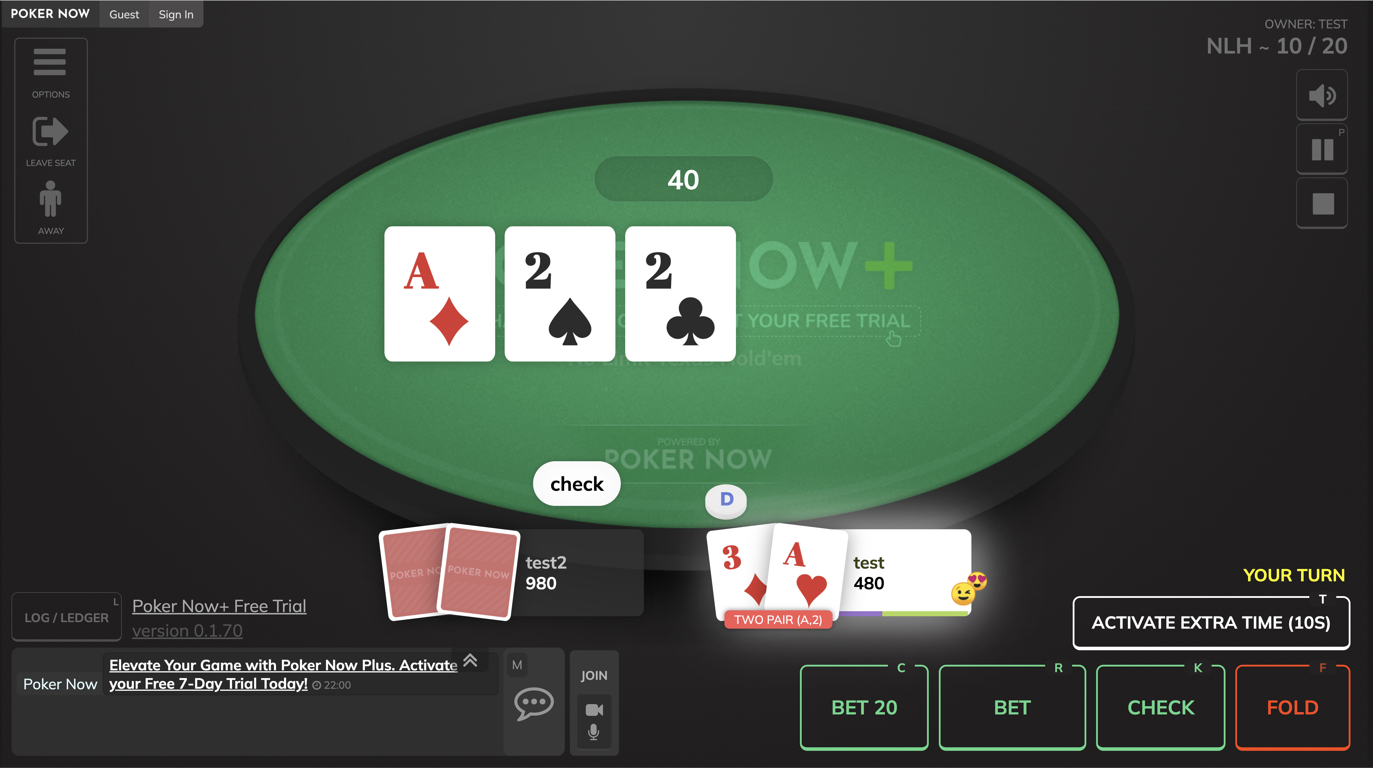위의 상황에 보이는 것 처럼 Starting pot에는 40$을 입력해 줍니다